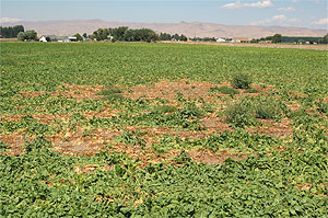Prevention of Rhizoctonia is critical. Management practices begin in the fall with post-harvest field work and careful varietal selection. Oliver T. Neher, University of Idaho extension plant pathologist emphasized the importance of taking time after harvest to minimize inoculum for following years. “It is important to manage plant residues. Plan crop rotation to break up infection cycles and to reduce inoculum buildup. Minimize areas with standing water, hard pans or soil compaction, as they favor the development of Rhizoctonia.”