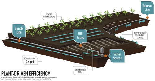 Growers now have an alternative in the subsurface irrigation market. RDI is currently being offered in limited commercial release through select dealers. With RDI, growers can set it, forget it, and monitor from the ground up.